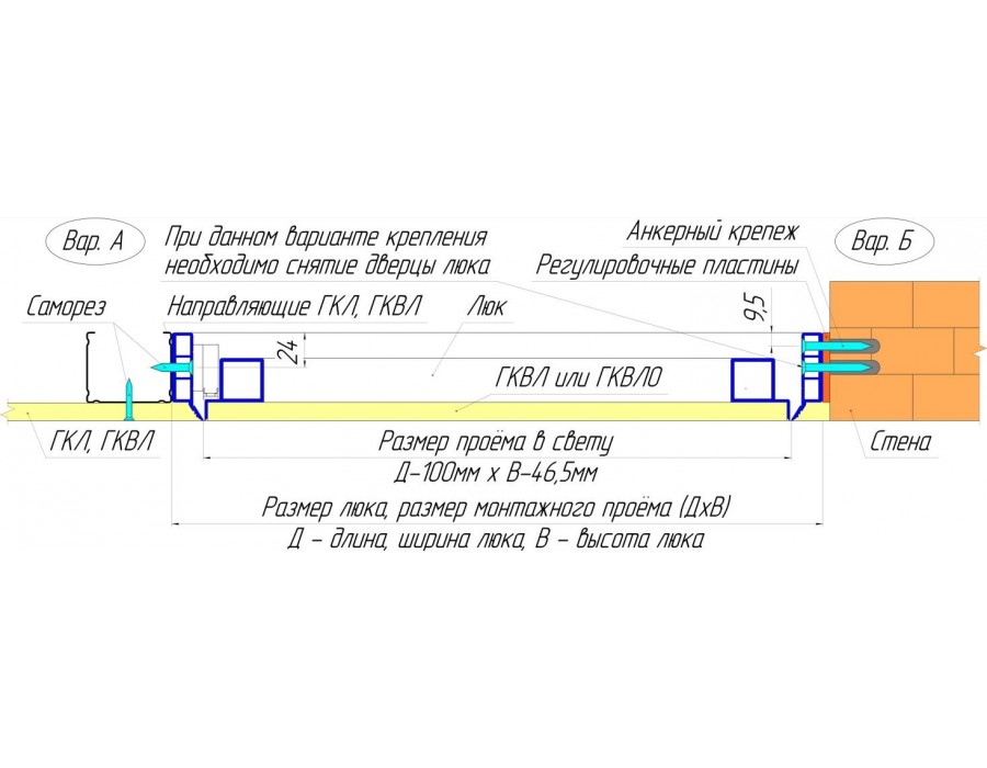Вертикальная установка скрытого короба в подготовленный проем из кирпичной кладки или перегородки из гипсокартона. Установочная схема прилагается.