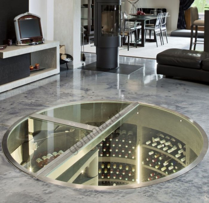Контроллер и блок питания поставят в электрощитовой (при технической возможности) или оформят декоративной коробкой из-под вина непосредственно на верхней полке погреба. Вы открываете дверцу в полу однократным нажатием на выносную клавишу.
