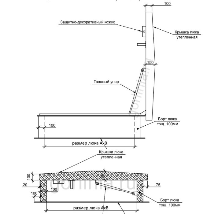 - внутренняя ручка для толкания и притягивания дверцы со стороны лестницы эвакуационного подъема на крышу.