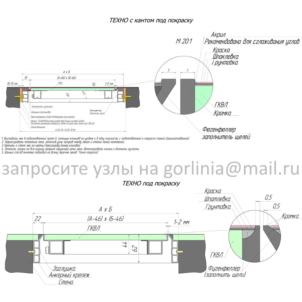 - без обрамления по принципу лючков ревизии, когда профиль является маяком для шпаклевки.