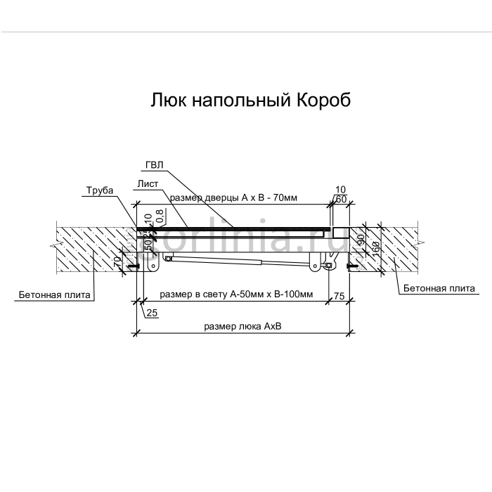 Рама без наличников выставляется в существующем отверстии 70*100 см с допусками, крепится в перекрытии через вертикальные пластины даже когда Ваш ремонт закончен и пол выложен керамогранитом или настелена ламинированная доска.